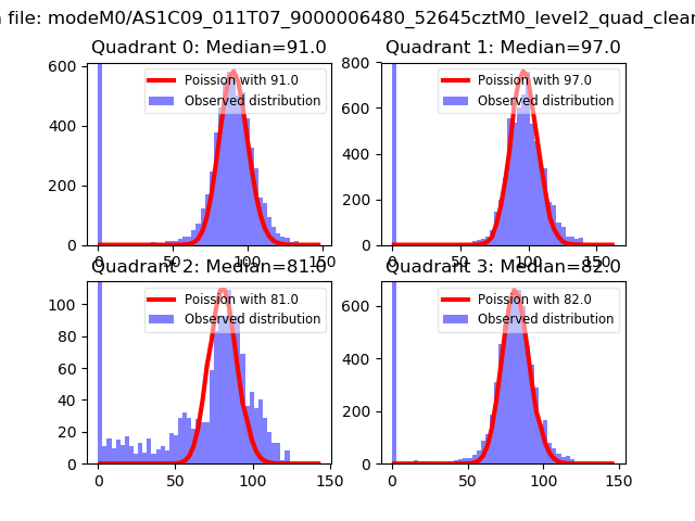 Red curve is a Poisson curve with rate = median count rate of data. |
