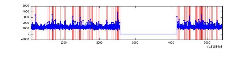 Red curve is a Poisson curve with rate = median count rate of data. |