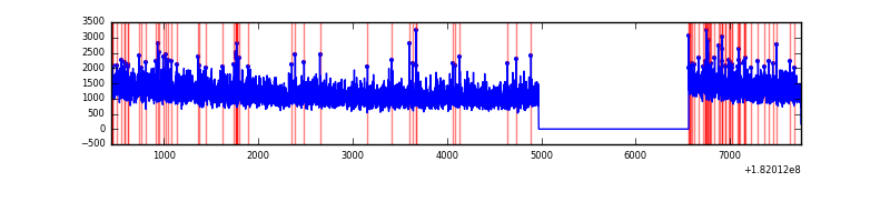 Red curve is a Poisson curve with rate = median count rate of data. |