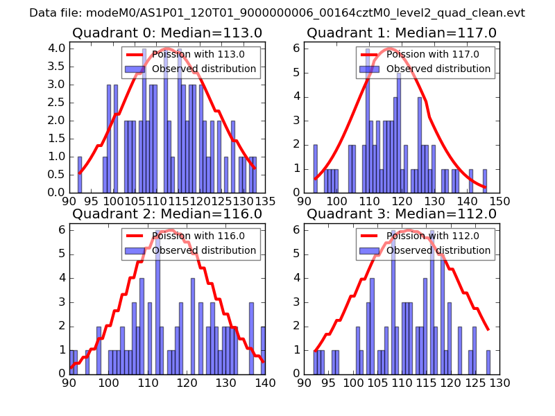 Red curve is a Poisson curve with rate = median count rate of data. |