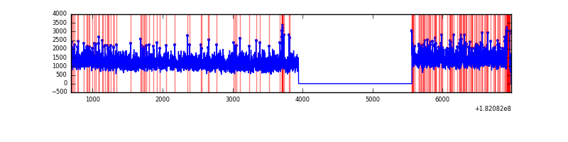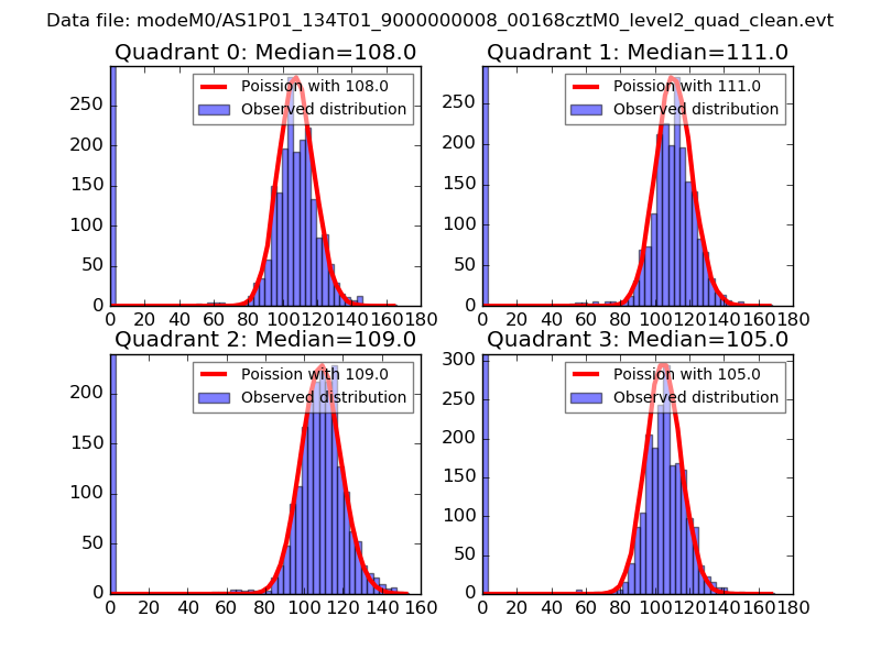 Red curve is a Poisson curve with rate = median count rate of data. |