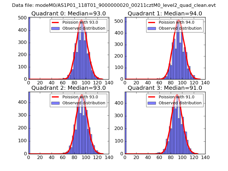 Red curve is a Poisson curve with rate = median count rate of data. |