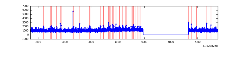 Red curve is a Poisson curve with rate = median count rate of data. |