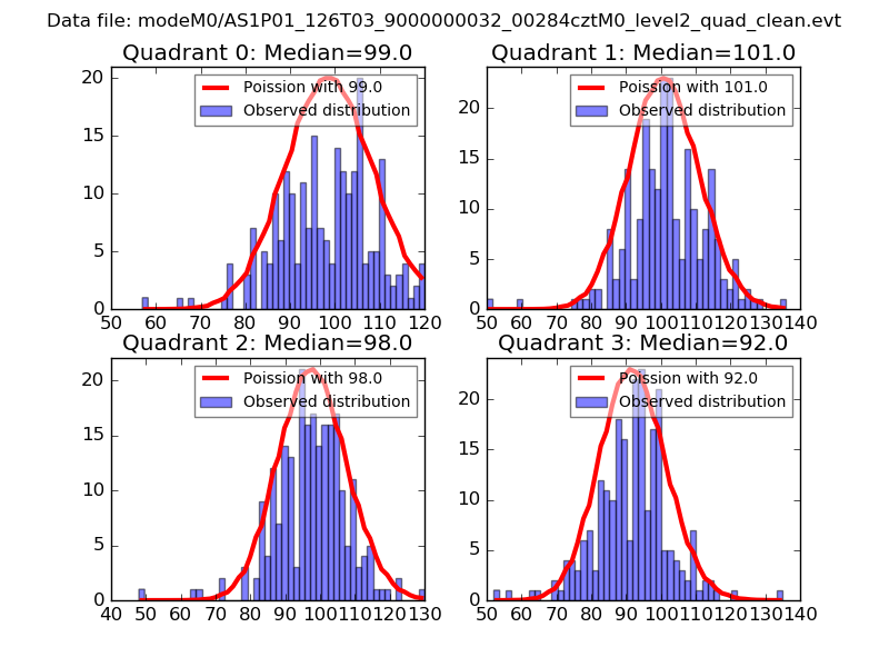 Red curve is a Poisson curve with rate = median count rate of data. |