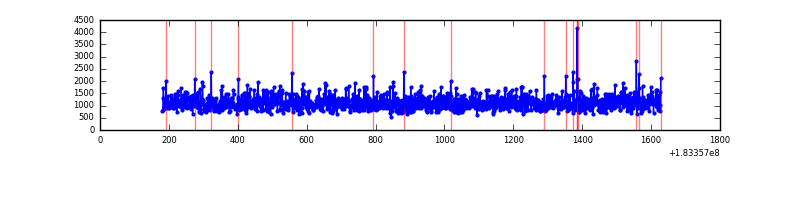 Red curve is a Poisson curve with rate = median count rate of data. |