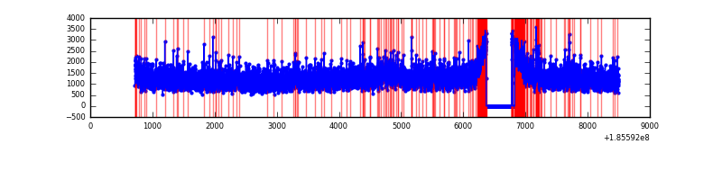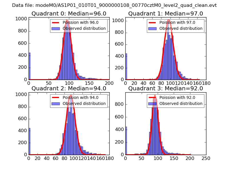 Red curve is a Poisson curve with rate = median count rate of data. |