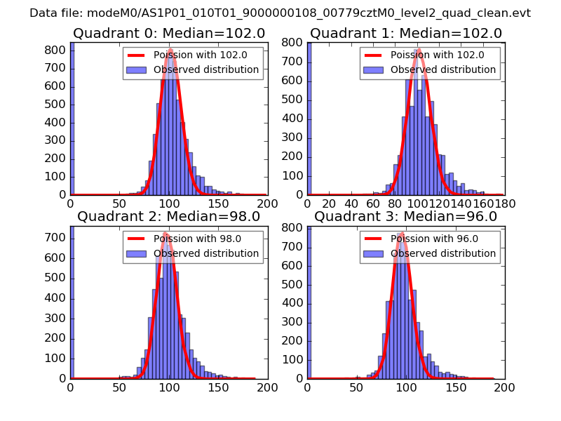 Red curve is a Poisson curve with rate = median count rate of data. |