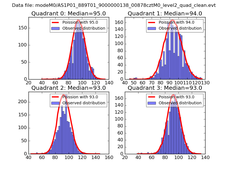 Red curve is a Poisson curve with rate = median count rate of data. |