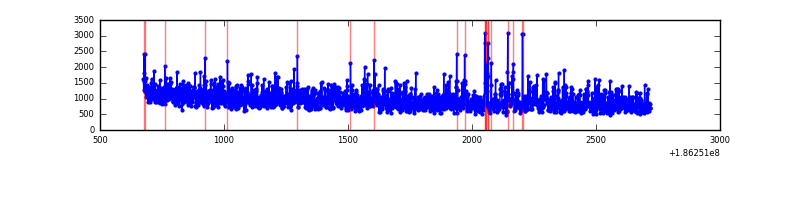 Red curve is a Poisson curve with rate = median count rate of data. |