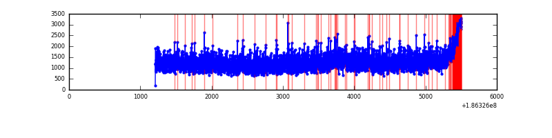 Red curve is a Poisson curve with rate = median count rate of data. |