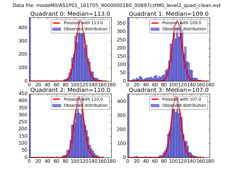 Red curve is a Poisson curve with rate = median count rate of data. |
