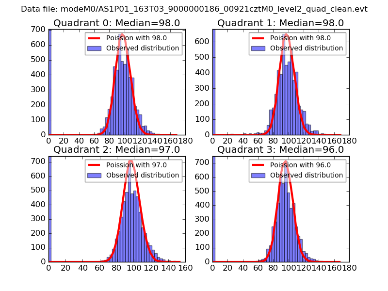 Red curve is a Poisson curve with rate = median count rate of data. |
