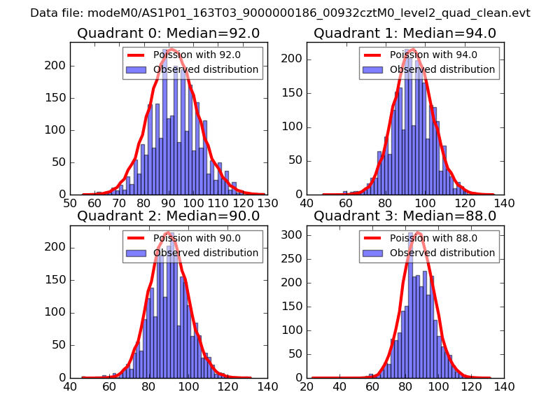 Red curve is a Poisson curve with rate = median count rate of data. |