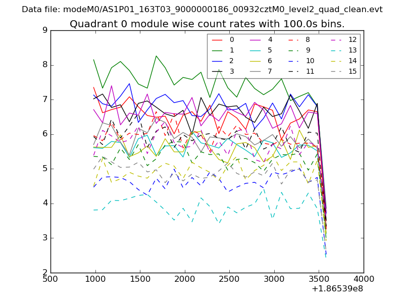 Module-wise count rates for Quadrant A