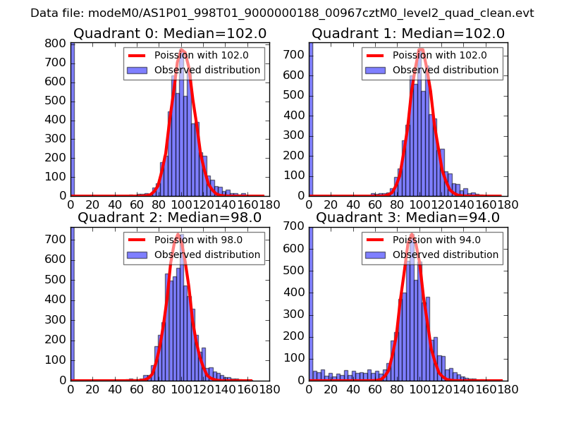 Red curve is a Poisson curve with rate = median count rate of data. |