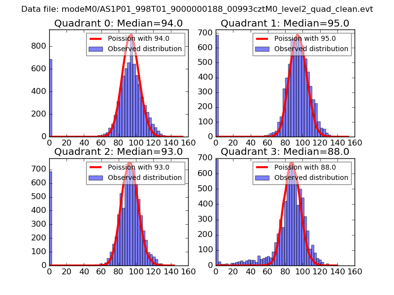 Red curve is a Poisson curve with rate = median count rate of data. |