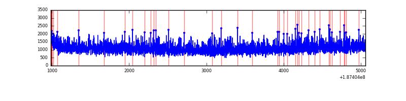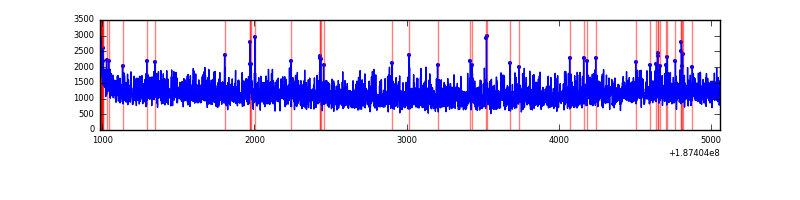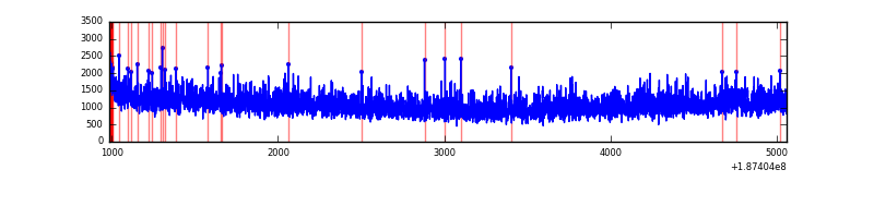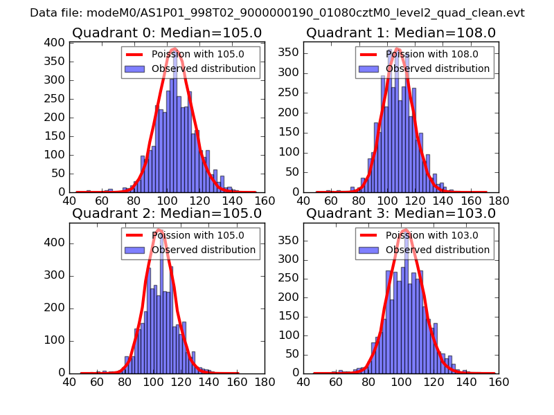 Red curve is a Poisson curve with rate = median count rate of data. |