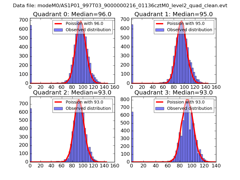 Red curve is a Poisson curve with rate = median count rate of data. |