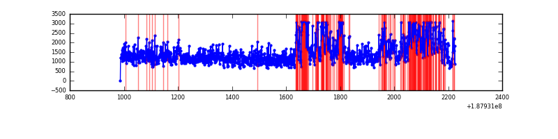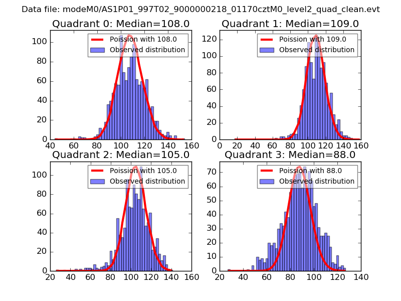 Red curve is a Poisson curve with rate = median count rate of data. |