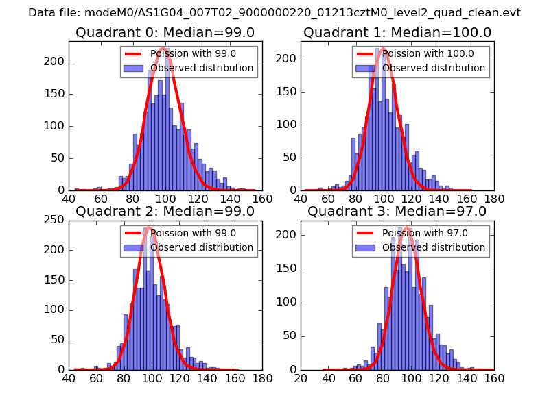 Red curve is a Poisson curve with rate = median count rate of data. |
