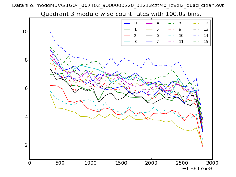 Module-wise count rates for Quadrant A