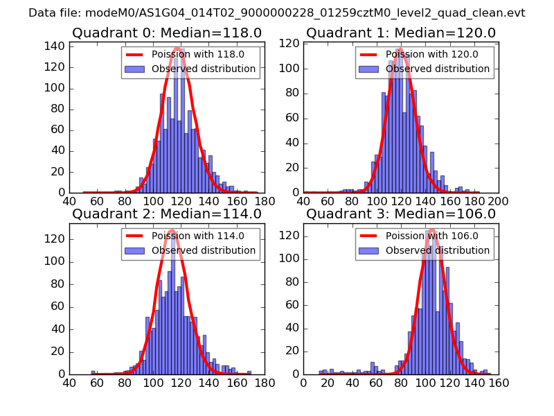 Red curve is a Poisson curve with rate = median count rate of data. |