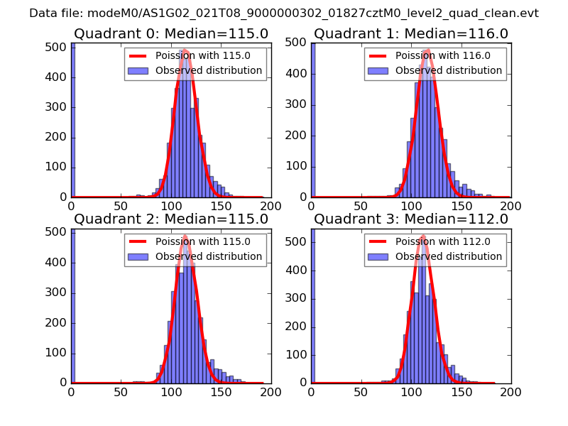 Red curve is a Poisson curve with rate = median count rate of data. |