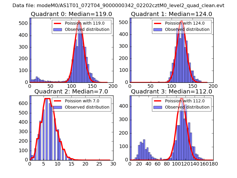 Red curve is a Poisson curve with rate = median count rate of data. |