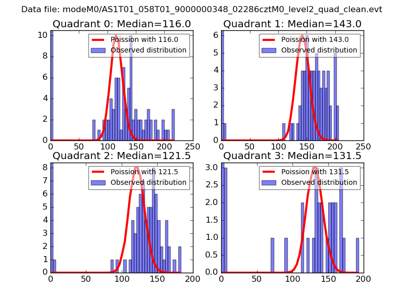 Red curve is a Poisson curve with rate = median count rate of data. |