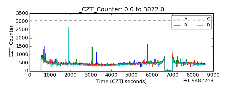 Quadrant # 1 sec bins Bins with >0 counts Bins with >2000 counts High rate bins dominated by noise Noise dominated (total time) Noise dominated (detector-on time) Marked lightcurve