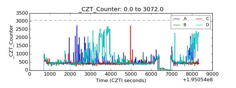 Quadrant # 1 sec bins Bins with >0 counts Bins with >2000 counts High rate bins dominated by noise Noise dominated (total time) Noise dominated (detector-on time) Marked lightcurve