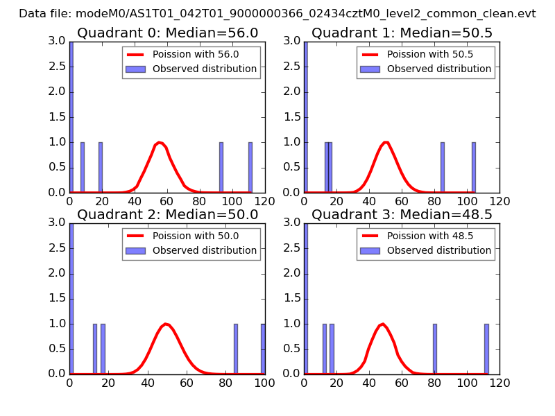 Quadrant # 1 sec bins Bins with >0 counts Bins with >2000 counts High rate bins dominated by noise Noise dominated (total time) Noise dominated (detector-on time) Marked lightcurve