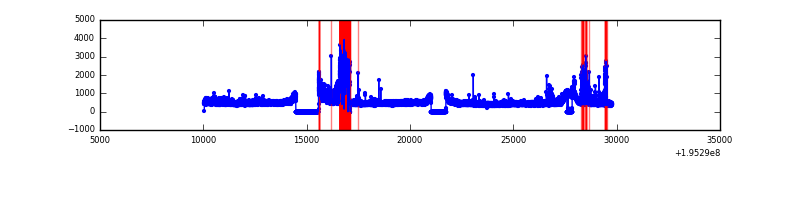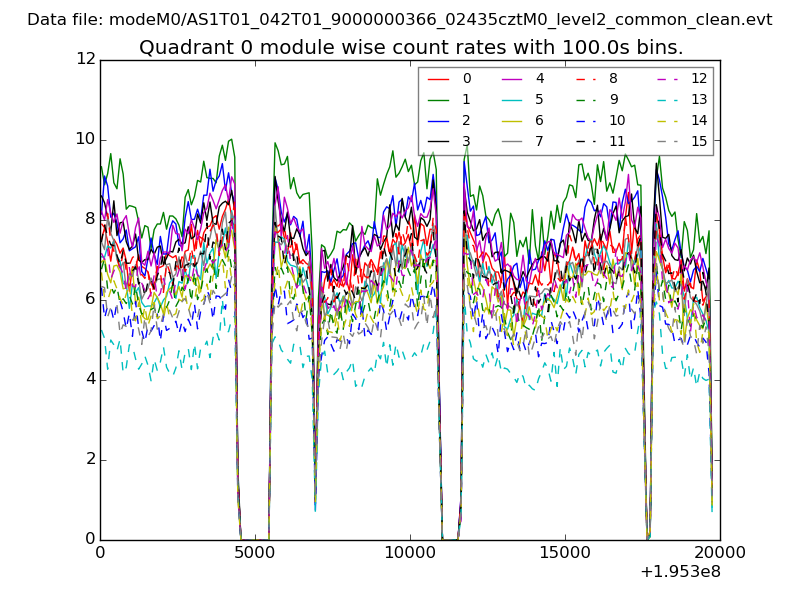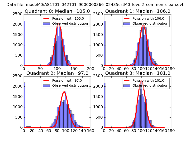 Quadrant # 1 sec bins Bins with >0 counts Bins with >2000 counts High rate bins dominated by noise Noise dominated (total time) Noise dominated (detector-on time) Marked lightcurve