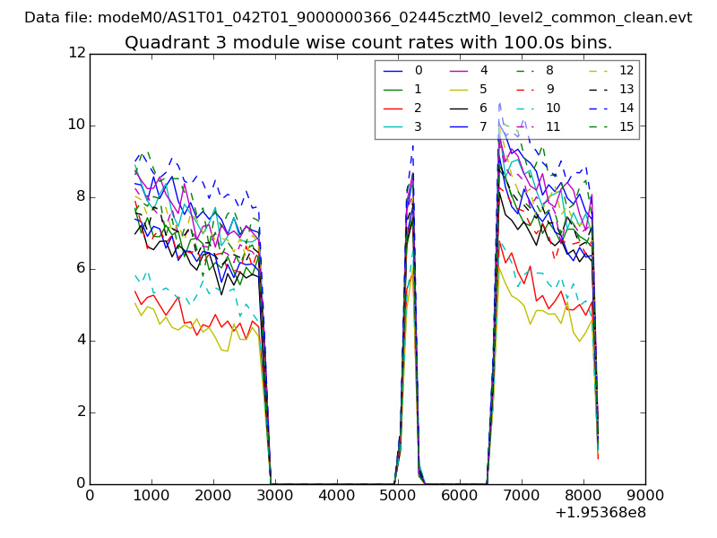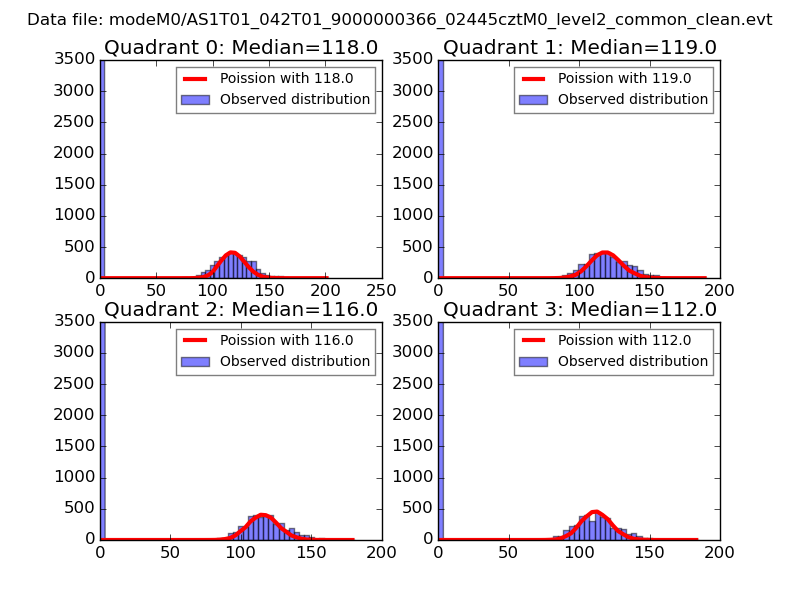 Quadrant # 1 sec bins Bins with >0 counts Bins with >2000 counts High rate bins dominated by noise Noise dominated (total time) Noise dominated (detector-on time) Marked lightcurve