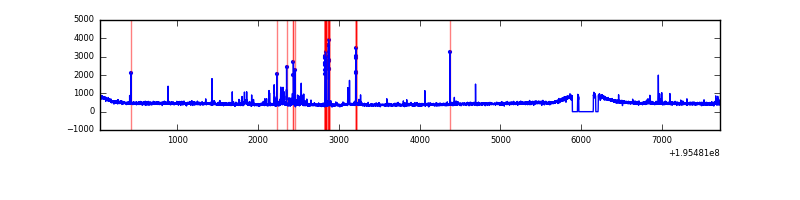 Red curve is a Poisson curve with rate = median count rate of data. |