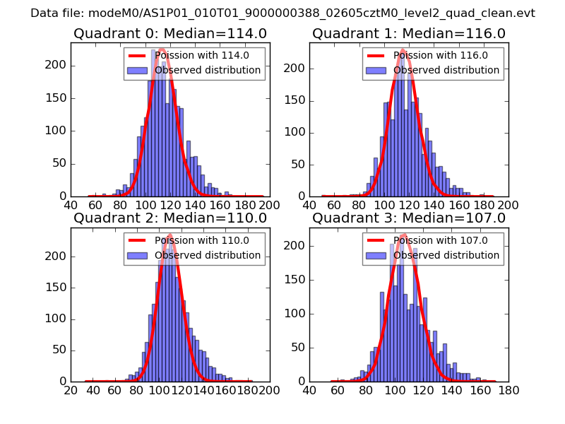 Red curve is a Poisson curve with rate = median count rate of data. |
