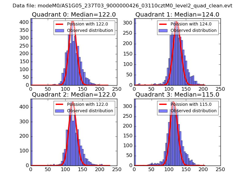 Red curve is a Poisson curve with rate = median count rate of data. |