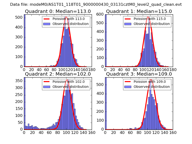 Red curve is a Poisson curve with rate = median count rate of data. |