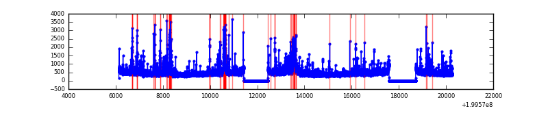 Red curve is a Poisson curve with rate = median count rate of data. |
