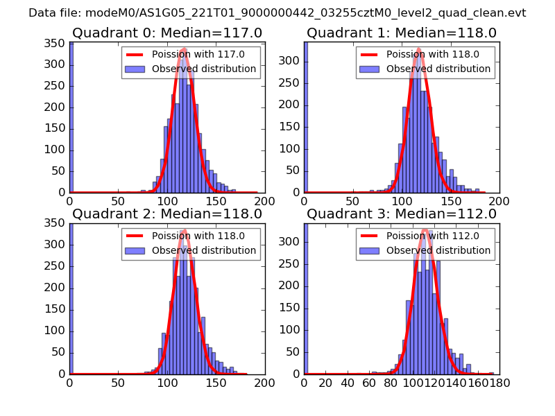 Red curve is a Poisson curve with rate = median count rate of data. |