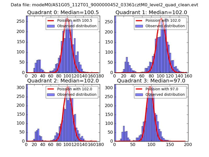 Red curve is a Poisson curve with rate = median count rate of data. |