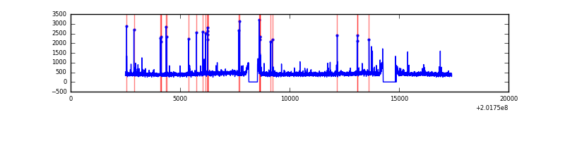 Red curve is a Poisson curve with rate = median count rate of data. |
