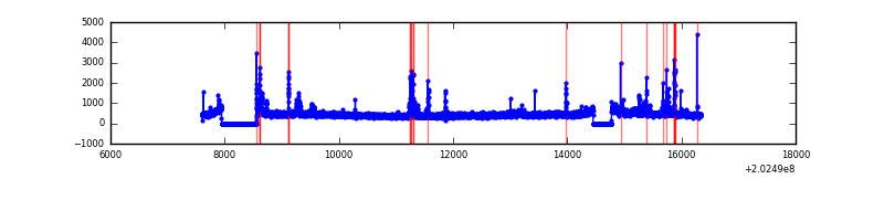 Red curve is a Poisson curve with rate = median count rate of data. |
