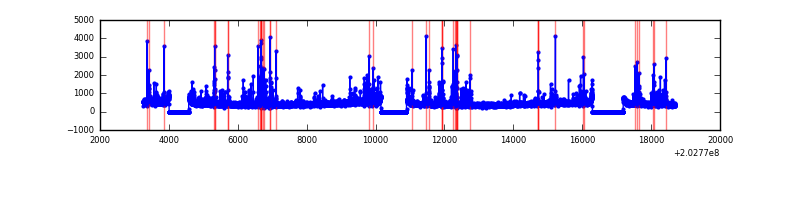 Red curve is a Poisson curve with rate = median count rate of data. |