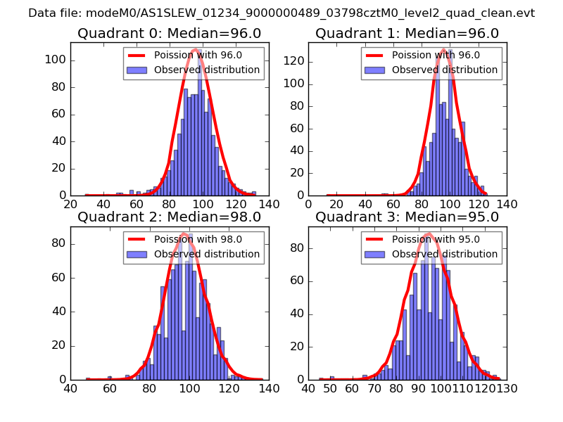 Red curve is a Poisson curve with rate = median count rate of data. |
