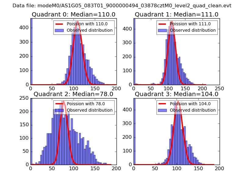 Red curve is a Poisson curve with rate = median count rate of data. |