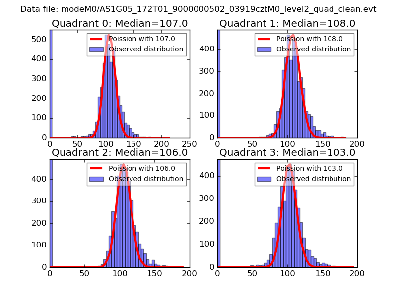 Red curve is a Poisson curve with rate = median count rate of data. |