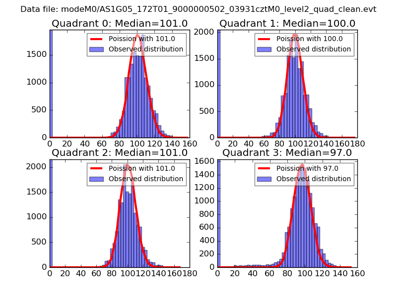 Red curve is a Poisson curve with rate = median count rate of data. |