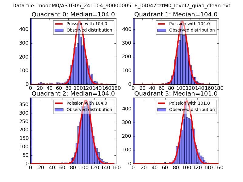 Red curve is a Poisson curve with rate = median count rate of data. |