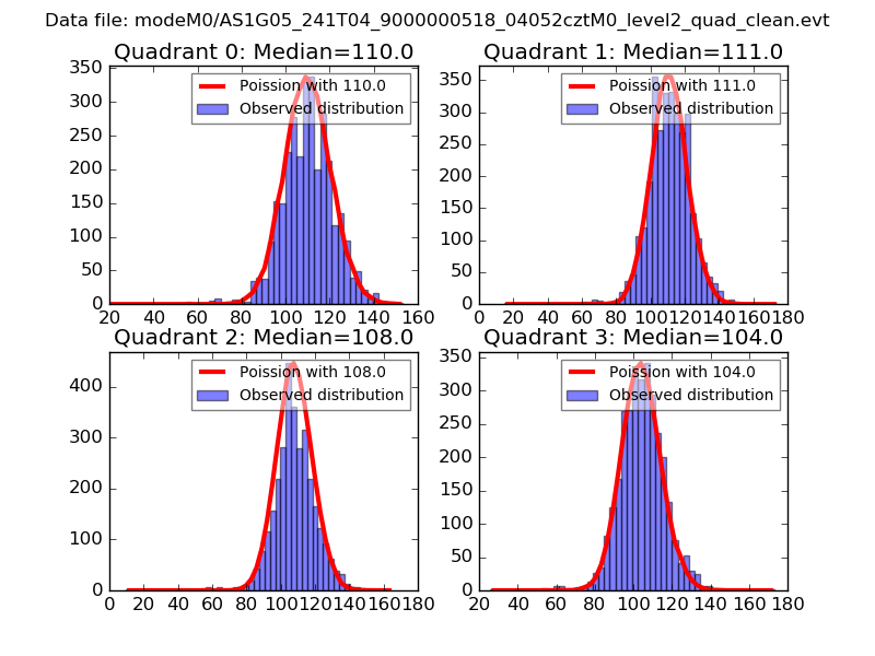 Red curve is a Poisson curve with rate = median count rate of data. |